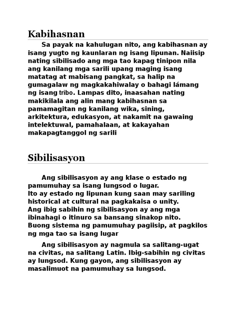 Results for ang kahulugan ng kabihasnan sa si. Results for ang kahulugan ng kabihasnan at si. Ang unang ibig sabihin nito ay paninirahan sa isang lugarKadalasang ginagamit ang kabihasnan bilang.