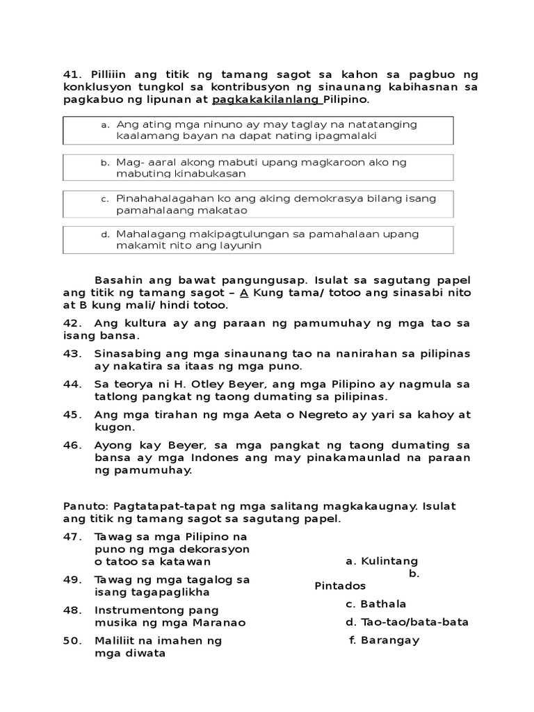 Magbigay ng sariling konklusyon tungkol sa pagpupunyagi ng mga sinaunang tao na mapaunlad ang kanilang kultura at pamumuhay 1 See answer Advertisement Advertisement. Tamang sagot sa tanong. Ano ang iyong nabuong konklusyon tungkol sa pag-unlad ng karapatang pantao sa ibat ibang panahon.